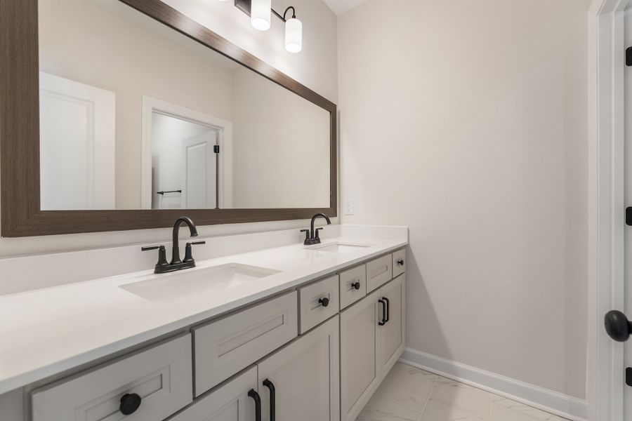 The Warwick II is a two-story home with four bedrooms and two-and-one-half baths. This home features a grand two-story entrance that leads to an open concept great room, dining room with a coffered ceiling, and gourmet chef's kitchen with stainless steel appliances and solid surface countertops. The great room is spacious and cozy, especially with the inclusion of the gas fireplace. Off the back of the home is a covered porch that overlooks a private wooded backyard. The downstairs also contains a flex room for extra convenience! Upstairs, the primary bedroom features a boxed ceiling and enlarged walk-in closet. The primary bathroom includes double vanities, a water closet, luxury shower, and free-standing soaker tub. The rest of the upstairs also features an enlarged loft, spacious laundry room, and three secondary bedrooms!