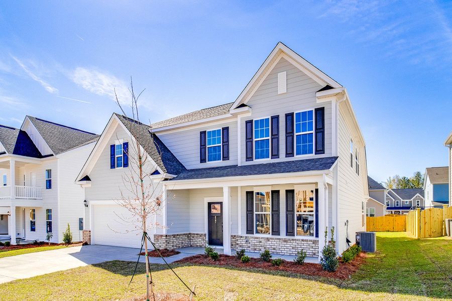 The Savannah is a five-bedroom, three-and-a-half-bath, two-story home featuring a primary bedroom on both the main level and the second level! A dining room is located off the entry. The open floor plan includes a spacious kitchen with a center island, an eat-in area, and a great room. The great room features a fireplace, perfect for relaxing mornings. In addition to a covered porch, we've enlarged the porch for even more outdoor living space. A mudroom is located off the garage, along with a convenient half bath. Upstairs, you'll find three secondary bedrooms and a loft space. The luxurious primary suite boasts a walk-in closet, an optional boxed ceiling, and a large, tiled shower. The upstairs primary bedroom includes a tiled shower and a free-standing tub!