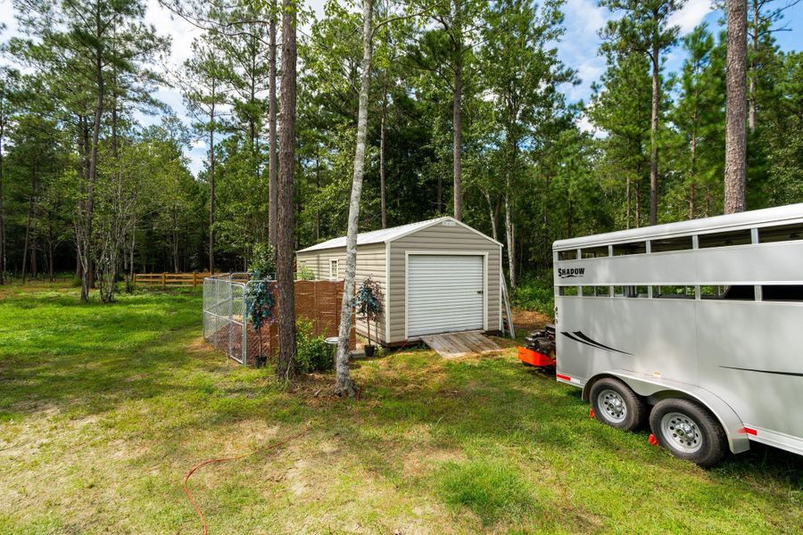 If you want to live a slower paced life in the country this is it!2023 build on 5.3 acres! 3 bedroom 2 bath impeccably maintained house with pretty views of the lake. The 312 sq. foot sunroom was added this year and is not included in total sq. feet of the house. The house has an open floor plan, huge kitchen with granite island and counters. Office space, large master bedroom/bathroom. Lots of storage! With over 5 acres there are many options for your outdoor use and enjoyment! Lake in front of house is stocked for fish! This new low density neighborhood only 9 traffic free miles from the Mt Pleasant Lowes and Harris Teeter. Horses are welcome and have access to miles of trails and thousands of acres in the nearby Francis Marion National Forest. Separate climate controlled shed conveys.