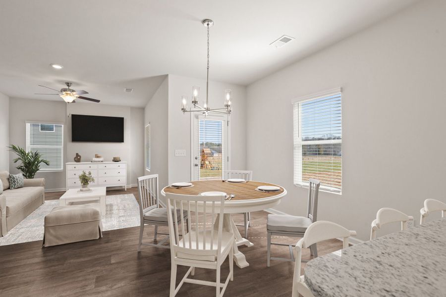 Welcome to 117 Gleneddie Road, showcasing the thoughtfully designed Carter plan with convenient single-level living. This home offers an open-concept layout that creates the perfect setting for everyday living and family gatherings, with a spacious living and dining area flowing seamlessly into the kitchen, complete with ample cabinet and counter space and a walk-in pantry. The main level features two secondary bedrooms along with a private primary suite, providing comfort and easy accessibility all on one floor. A covered patio extends your living space outdoors, making it easy to relax and entertain year-round. Images are representative of the Carter plan.