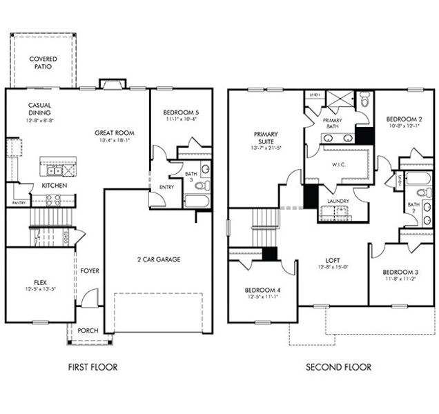 The impressive primary suite boasts dual sinks and a large walk-in closet. White cabinets with white quartz countertops, EVP flooring, and white kitchen backsplash in our Chic Package.