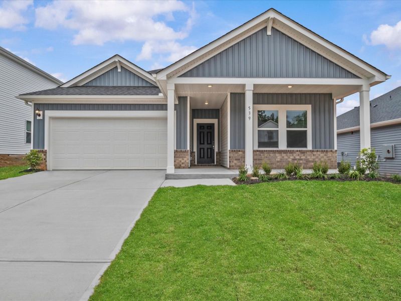 Enjoy happy hour on the Chandler's covered back patio. In the primary suite, dual sinks and a walk-in closet simplify busy mornings. Pebble cabinets with white quartz countertops, EVP flooring, and carpet in our Fresh Package.