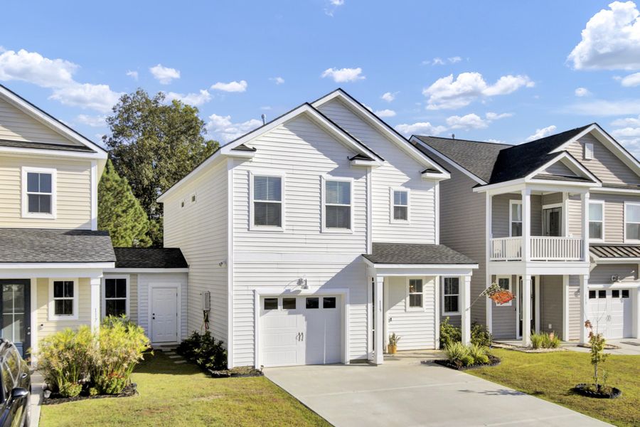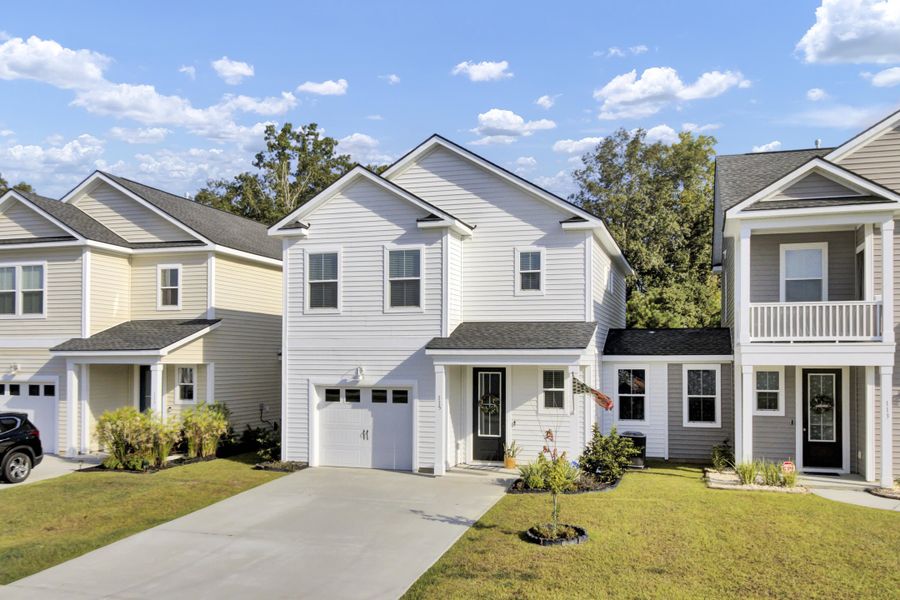 Assumable loan at 4.5% interest rate available on this move-in ready 3BR/2.5BA home in Hawthorne Landing. Built in 2023, this nearly new Percy plan features an open layout filled with natural light, a modern kitchen with large center island, pantry, and Blanco Maple Quartz counters, and a living area that flows to a covered screened patio with wooded views. Upstairs, the spacious primary suite includes a huge walk-in closet and elegant bathroom, while two secondary bedrooms share a hall bath. Additional highlights include two outdoor storage closets and HOA-included landscaping and irrigation. Located in a Flood X Zone, this home blends comfort, function, and low-maintenance living in a prime Goose Creek location.