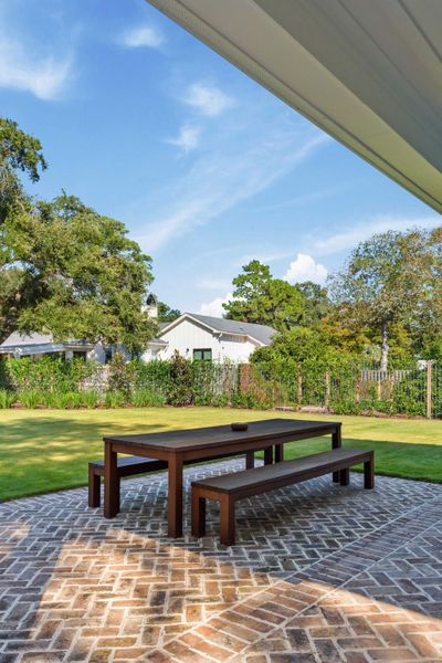 Step outside to discover extensive landscaping, featuring a live fence, a raised vegetable garden and Rain Bird irrigation system that ensures the entire yard flourishes. There are brick porches at the front and back, both equipped with custom Monte Carlo porch fans and space heaters for year-round comfort. An outdoor shower and yard that has been prepped for a pool adds a touch of luxury to your backyard oasis.