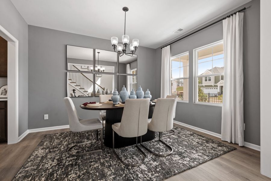 The Morganton floor plan offers 2,578 square feet of flexible living space with 4 to 5 bedrooms and 2.5 to 3 bathrooms. Designed with an open layout, this home includes a dedicated home office or study—perfect for remote work or quiet focus. The Owner’s Suite is located upstairs, providing a private retreat away from the main living areas. An optional sunroom adds extra charm and natural light, creating a cozy space to relax or entertain. With a 2- to 3-car garage and multiple layout options, the Morganton is built for both comfort and convenience.Images are representative of the Morganton plan.