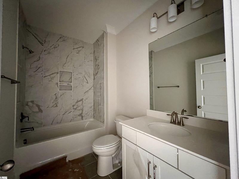 Beautiful Craftsman-style home with 3 bedrooms and 2.5 baths and an office on the main level, with a large flex room / 4th bedroom and full bath upstairs. The open-concept living space showcases features including a gas fireplace and a gourmet kitchen with quartz countertops, an oversized island, and a separate gas cooktop. Thoughtful details such as a convenient drop zone at the back entrance, walk in pantry and walk-in utility closet provides exceptional storage. Step outside to the covered deck overlooking a spacious lot and a serene wooded creek bed along the side of the home. Zoned for Northpointe / McCants / TL Hanna and located just five minutes from groceries, shopping, schools, and I-85, Walker’s Pointe combines the convenience of city living with the charm of a peaceful, rural setting—perfect for families of all ages.