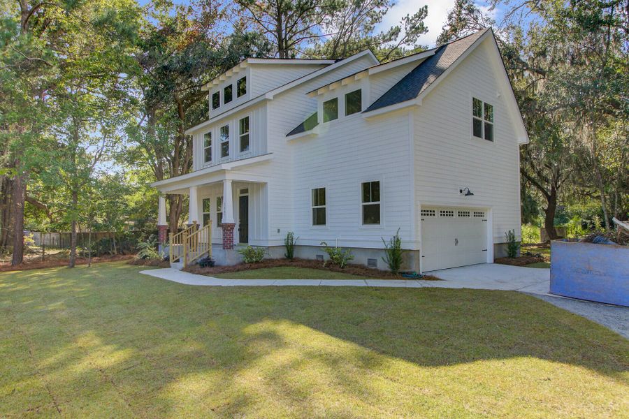 Tucked away on a serene, wooded lot with mature live oaks in the heart of James Island, this newly built semi-custom home offers the perfect blend of modern design, thoughtful layout, and peaceful surroundings with no HOA. Featuring 4 bedrooms and 2.5 baths, this two-story home is ideal for those seeking space, comfort, and low-maintenance luxury. Step inside to an inviting open floor plan where wide-plank luxury vinyl flooring flows throughout the main level, seamlessly connecting the spacious living area to a stunning eat-in kitchen. Designed for both everyday living and entertaining, the kitchen boasts sleek quartz countertops, stainless steel appliances, custom cabinetry, and a direct view of the private, fenced in backyard making it as functional as it is stylish. Just off the the kitchen, the back porch offers the perfect spot to unwind or entertain, surrounded by the sounds and beauty of nature with no neighbors in sight.