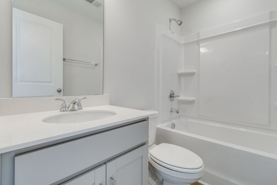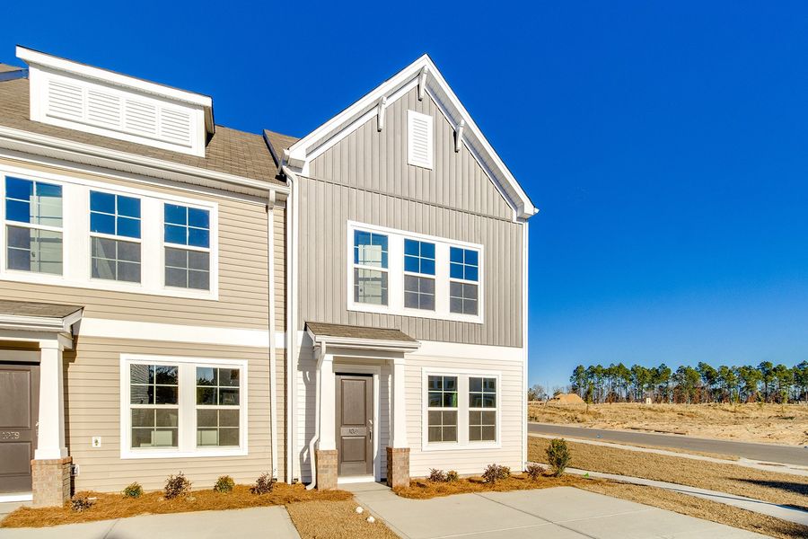 This Laurens B End Unit features three bedrooms and two-and-one-half bathrooms and has a very warm and cozy feel. The first floor features a large great room, an eat-in area, and an open kitchen equipped with stone gray shaker cabinetry, Miami vena white quartz countertops, wild dunes luxury vinyl plank flooring, stainless steel appliances, pendant lights above the kitchen sink, and a generous pantry. Additional first-floor amenities include a powder bathroom and a convenient laundry area. Upstairs, the townhome offers three well-sized bedrooms, including a beautiful primary bedroom with a large walk-in closet and an ensuite bathroom featuring a double-sink vanity and a tub/shower. The home also boasts a fully fenced backyard with a large patio, ideal for relaxation or entertaining guests, plus an extra storage closet. Enjoy low maintenance living with an irrigation system and exterior home maintenance. The community offers future amenities with a pool, cabana, playground, fire pit, and sidewalks ensuring a comfortable and enjoyable lifestyle for all.