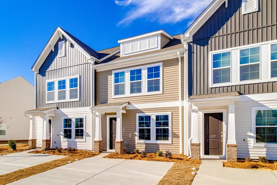 This Laurens A features three bedrooms and two-and-one-half bathrooms and has a very warm and cozy feel. The first floor features a large great room, an eat-in area, and an open kitchen equipped with bright white shaker cabinetry, luna pearl granite countertops, driftwood luxury vinyl plank flooring, stainless steel appliances, pendant lights above the kitchen sink, and a generous pantry. Additional first-floor amenities include a powder bathroom and a convenient laundry area. Upstairs, the townhome offers three well-sized bedrooms, including a beautiful primary bedroom with a large walk-in closet and an ensuite bathroom featuring a double-sink vanity and a walk-in tile shower. The home also boasts a fully fenced backyard with a large patio, ideal for relaxation or entertaining guests, plus an extra storage closet. Enjoy low maintenance living with an irrigation system and exterior home maintenance. The community offers future amenities with a pool, cabana, playground, fire pit, and sidewalks ensuring a comfortable and enjoyable lifestyle for all.