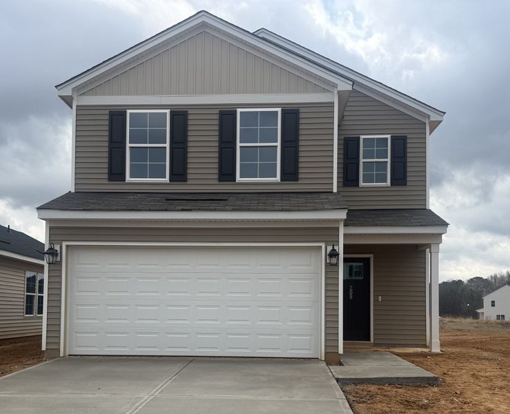 This Kershaw is a four bedroom, two-and-one-half bathroom home featuring an open great room, a modern kitchen with burlap cabinets and stainless-steel appliances, and a flex space on the main level perfect for a home office or formal dining. The primary suite includes an ensuite bathroom and walk-in closet, while three additional bedrooms share a full bathroom. This home blends functionality with comfort, offering both private and shared spaces for modern living.