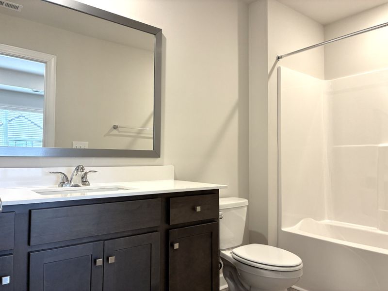 This Cothran Homes Beckett 3 story townhome features our exclusive Santabarbara curated design. A wonderful open floor plan with spacious private garage, first floor flex room with half bath and second floor balcony. Kitchen is beautifully designed with Fulton Harbor blue cabinets, Fashion White quartz countertops, Satin Nickel cabinet hardware, Full Basin stainless steel undermount sink, Fulton Harbor blue center Island and under cabinet lighting. Enjoy cooking on your GE Stainless gas range and whip up a meal so tasty your family will be talking about it for days. Kitchen also includes GE Stainless above-the- range microwave and dishwasher. This 2 Bedroom, 2 ½ bath includes 5” wide Polaris Wild Dunes luxury vinyl plank flooring throughout second floor main living areas and Shaw Midway Plaza Pebble Creek carpet with 6lb pad on stairs and in third floor bedrooms. Spacious Owner’s bedroom with LED disk lights, Minka ceiling fan, tray ceiling and walk- in closet. Stunning en-suite includes Tiled walk-in shower, York Graphite-stained double vanity with Arctic White Quartz countertop, white undermount sinks and Urban Organic Calacatta Resilient flooring. Second floor laundry room includes Washer/ Dryer hookup and shelving for all your laundry accessories. And last, but not least, Sherwin Williams City Loft interior wall paint, LED disk lights in the Living Room, Kitchen Island Pendants and fist floor LVP Stairs add the perfect final touches to complete this move-in -ready home.