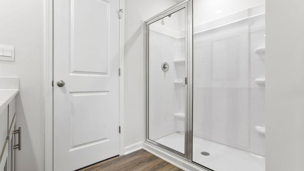 The primary suite Features a peaceful retreat with a large walk-in closet and an en suite bathroom featuring dual vanities and a spacious shower. The two additional bedrooms share a full bathroom with dual vanities, providing ample space and convenience. The laundry room is also located on the second floor for added convenience.
