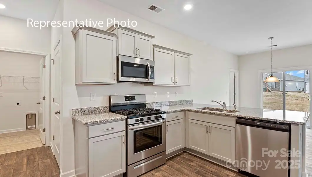 Come see 1308 Lily Drive in Richburg, South Carolina. The Macon is one of our ranch plans featured at Stanton in Richburg, SC. This ranch home offers three bedrooms, two bathrooms, and a two-car garage with 1,343 square feet. The moment you step inside, a foyer welcomes you into the heart of the home. The open concept seamlessly blends the main living areas, creating an ambiance of spaciousness and connectivity. The chef’s kitchen is equipped with stainless steel appliances, custom cabinetry, granite countertops, and a breakfast bar, perfect for cooking and casual dining. Adjacent to the large great room is the primary suite which feels like a sanctuary of tranquility, featuring a en-suite bathroom with dual vanities and a walk-in closet.