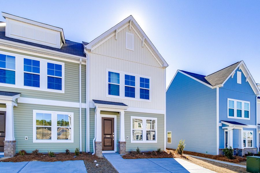 This Laurens B end unit features three bedrooms and two-and-one-half bathrooms and has a very warm and cozy feel. The first floor features a large great room, an eat-in area, and an open kitchen equipped with Umber cabinetry, Iberian Sunset granite countertops, Wild Dunes luxury vinyl plank flooring, stainless steel appliances, pendant lights above the kitchen sink, and a generous pantry. Additional first-floor amenities include a powder bathroom and a convenient laundry area. Upstairs, the townhome offers three well-sized bedrooms, including a beautiful primary bedroom with a large walk-in closet and an ensuite bathroom featuring a double-sink vanity and a relaxing shower-tub combo. The home also boasts a fully fenced backyard with a large patio, ideal for relaxation or entertaining guests, plus an extra storage closet. Enjoy low maintenance living with an irrigation system and exterior home maintenance. The community offers future amenities with a pool, cabana, playground, fire pit, and sidewalks ensuring a comfortable and enjoyable lifestyle for all.