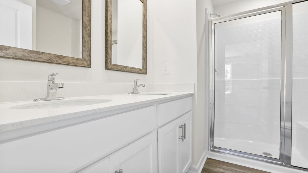 The home features a primary suite with a walk-in closet, featuring a shower with dual vanities. The additional three bathrooms are spacious and have access to a secondary bathroom.