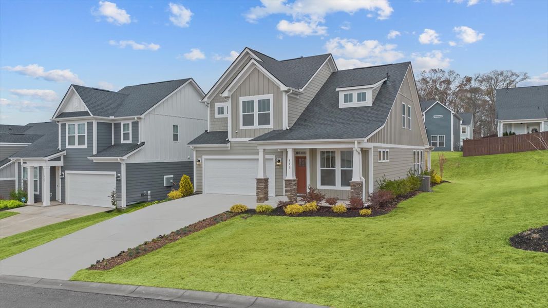 The Finley offers an open concept design with main level living and attached 2 car garage. This home is perfect for entertaining featuring a dining room, spacious kitchen with island and bar seating that is open to the family room with beautiful vaulted ceilings. Including a first floor owner’s suite with a generous walk-in closet, and dual vanity in the owner's bathroom. The main level also includes 2 coat closets and laundry room. Second level includes 3 bedrooms with walk in closets, and a full bathroom with dual vanity. Rear patio with optional covered or screened porch is great for enjoying the outdoors.