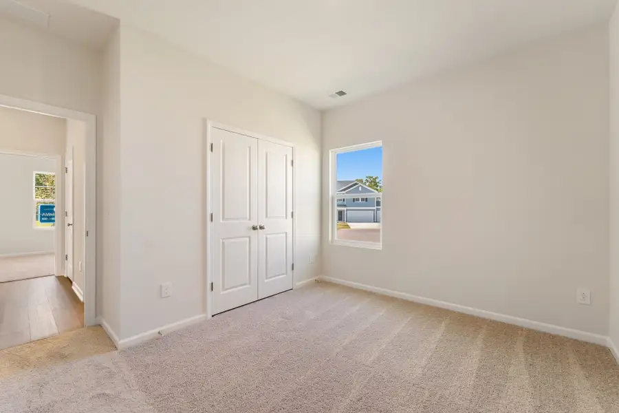 The Lanier is a one-story home featuring three bedrooms and two full bathrooms. Walk through the front door and into the open great room, kitchen, and eat-in. The kitchen features an island with a breakfast bar and a spacious pantry that provides ample storage space. The primary suite is off the great room and includes two linen closets, a water closet, and a large walk-in closet. The other two bedrooms are located at the front of the home, along with a shared full bathroom. The garage entry is tucked away with the laundry room that includes a space for hanging clothes. This beautiful plan is complemented with a covered porch which extends outside of great room and eat-in area.