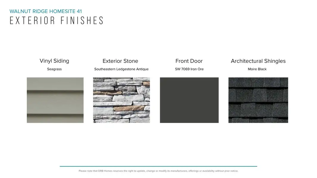 *Temporarily discounted promotional pricing (“Promotional Pricing”) for homesite 41 in the Walnut Ridge subdivision (Inman, SC), as shown above, is not available for and may not be combined with any offer, promotion, or incentive offered by DRB Homes (including, without limitation, any closing cost assistance/contributions or other financial incentives offered by DRB Homes). DRB Homes may, in its sole discretion, and without prior notice, modify or discontinue the Promotional Pricing at any time. Additional limitations apply. See a DRB Homes sales consultant for more information.