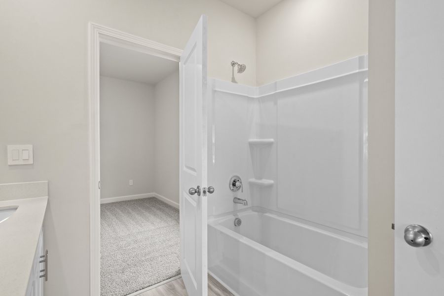 Entertain with ease in the Gibson's bright, open-concept living space. A secondary bath with dual sinks serves both secondary bedrooms, while the private primary suite boasts a walk-in shower and impressive closet.