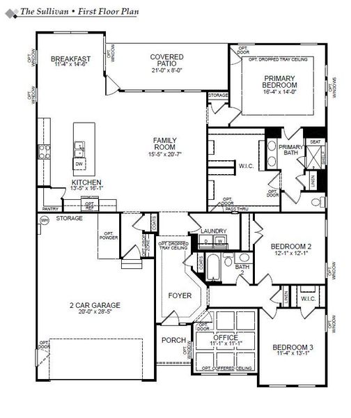 Proposed construction Sullivan Elevation AThe Sullivan is a 3BR/2Bath ranch-style home with a dedicated home office, a spacious family room, rear kitchen with large center island overlooking family room, a separate breakfast area, a covered rear porch! Optional ''add-ons'' available to personalize this home such as gas fireplace, powder room, a formal dining room, several primary bath options, and an optional second floor with a loft, bedroom, and an additional bath.