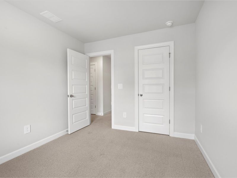 Prep dinner at the kitchen island while mingling with guests in the open-concept great room. A convenient second-story laundry simplifies the chore. White cabinets with white quartz countertops, EVP flooring, and carpet in our Essence Package.
