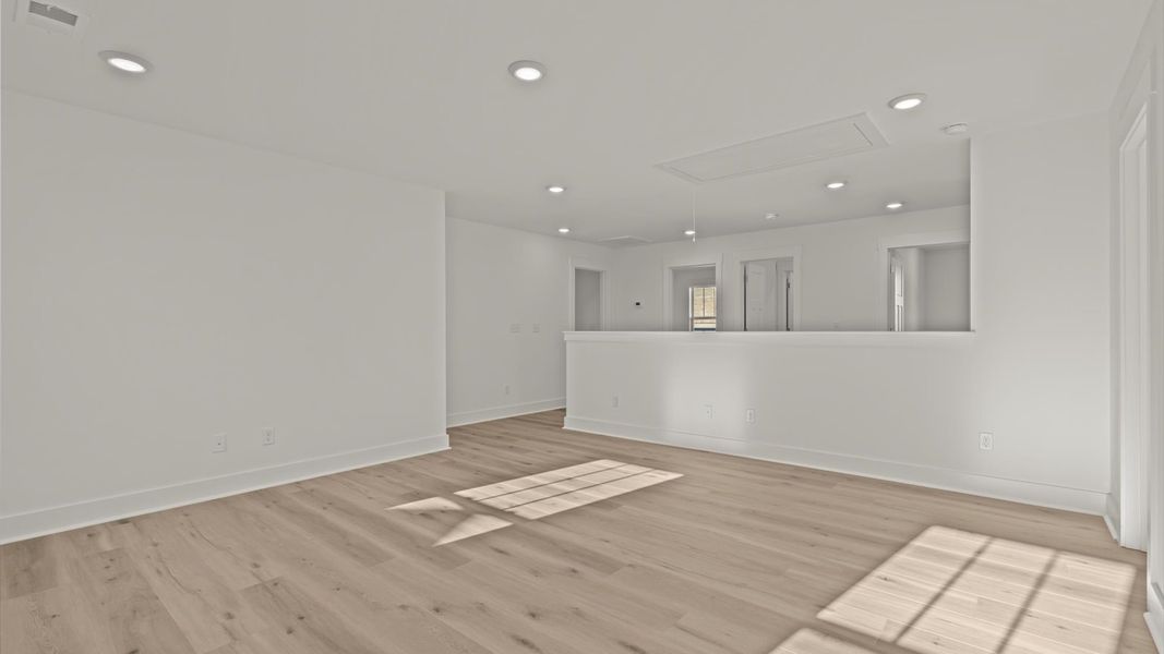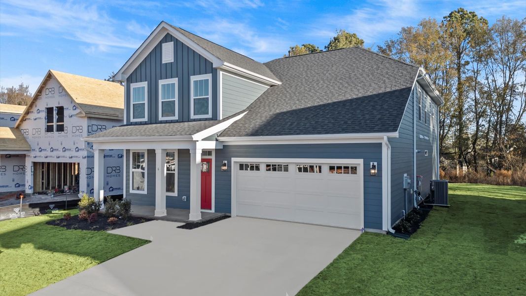 A welcoming rocking chair front porch sets the tone for this exceptional home. Inside, a coffered ceiling formal dining room with an elegant gold chandelier creates a striking first impression. The upgraded gourmet kitchen is thoughtfully appointed with a microwave/oven combination, 30-inch range hood, gas cooktop, designer pendant lighting, and farmhouse sink, seamlessly opening to the breakfast area and family room with fireplace.