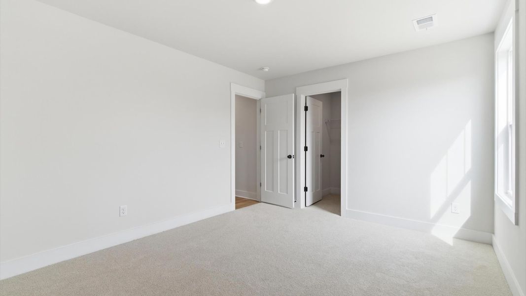 Oak stairs with an open iron railing lead to the second level, where the expansive primary suite serves as a private retreat, complete with an extended sitting area, an oversized walk-in closet, and a luxurious en suite bath featuring dual vanities, a private water closet, and a frameless tiled walk-in Roman shower. The second level also includes two additional secondary bedrooms with spacious closets, a full bathroom, and a stunning loft offering flexible living or entertainment space.