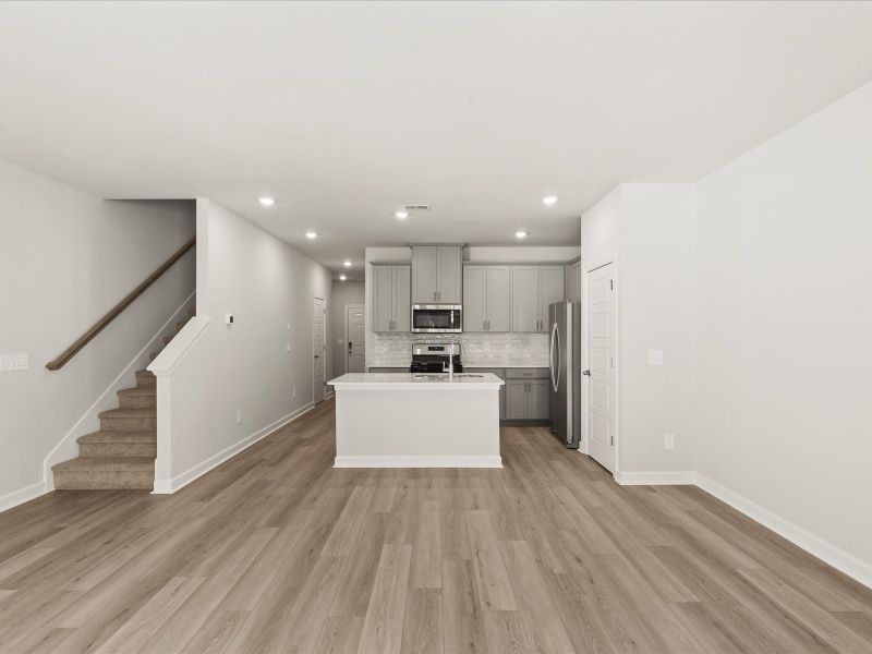 Kick your feet up after a long day on the back patio. The primary suite features a spacious ensuite bath with dual sinks. Pebble cabinets with white quartz countertops, EVP flooring, and carpet in our Fresh Package.