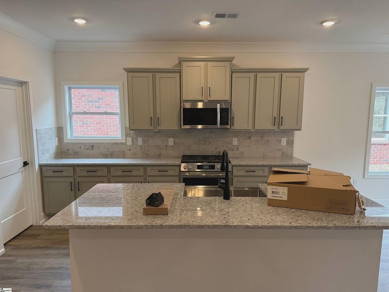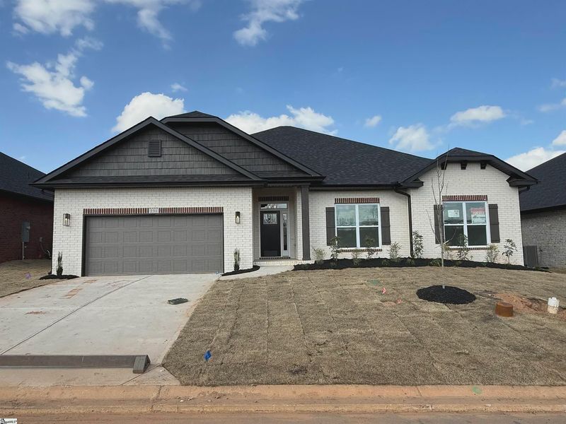 The open-concept area centers around a chef's dream kitchen, highlighted by a beautiful farmhouse sink and stylish matte black fixtures. Retreat to a luxurious master suite designed for privacy, while three additional adaptable bedrooms provide versatility for family or home offices. A covered lanai extends your entertaining space outdoors. Adding to the convenience are a central laundry room and a two-car garage. Crafted with meticulous attention to detail, this brand-new home is ideally situated between Simpsonville and Mauldin, offering easy access to vibrant downtown Greenville. Discover your dream home today!