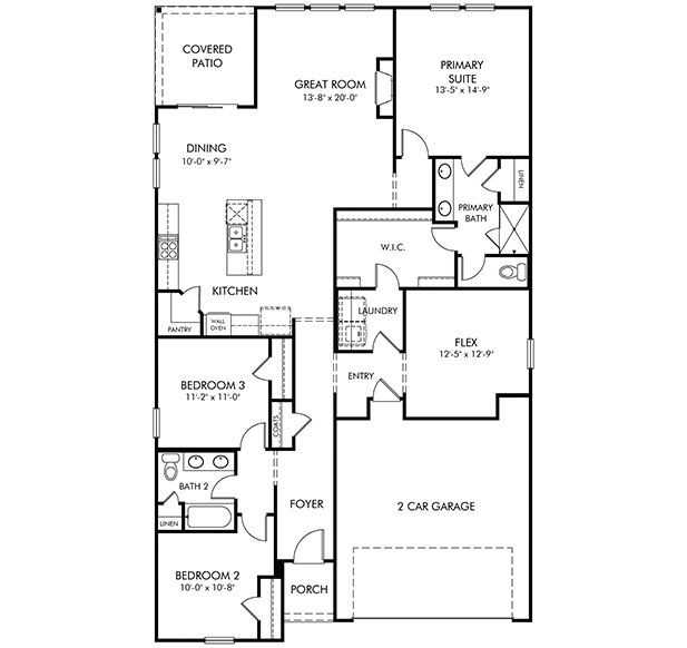 A walk-in pantry and large kitchen island make it easy to feed a group. Tray ceilings in the primary suite lend an elegant touch. Barnett Linen cabinets and Calacatta Wisteria Quartz countertops come in our Timeless Contrast package.