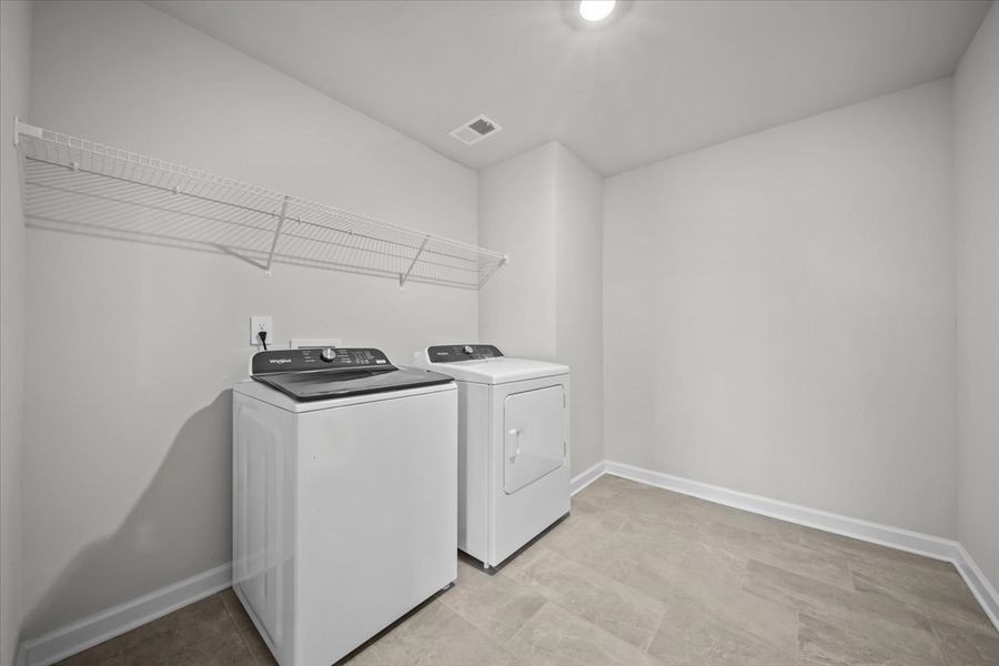 The Johnson's impressive two-story foyer gives way to the gourmet kitchen and open-concept living area. White cabinet with white quartz countertops, EVP flooring, and carpet in our Radiant Package.