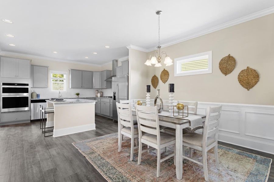 The Bentcreek, built by Great Southern Homes, is a spacious 4-bedroom, 3-bathroom home featuring an open floor plan designed for both comfort and entertaining. The kitchen offers a large island that overlooks the living area and formal dining space, creating a seamless flow throughout the main level. A full bedroom and bathroom on the first floor provide added convenience for guests or multi-generational living. Upstairs, you'll find a second living area, four bedrooms, and two additional bathrooms, along with a centrally located washer and dryer hookup. The owner's suite is especially inviting, featuring open French doors leading into the master bathroom, enhancing the sense of space and luxury. *Stock photos are being used*