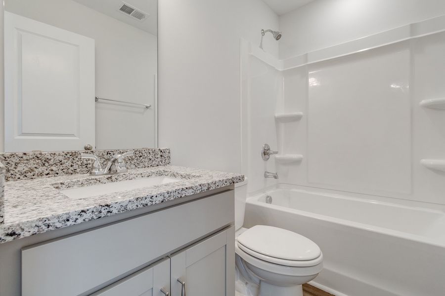 Welcome to the LaurensTownhome – Stylish, Functional, and Low-Maintenance! This beautifully designed townhome offers the perfect combination of comfort and convenience in a vibrant community with exciting future amenities, including a pool with cabana, playground, firepit, sidewalks, and walking trails. Inside, you’ll find three bedrooms and two-and-a-half bathrooms thoughtfully arranged for modern living. The first floor features an open layout with a spacious great room, an eat-in area, and a stunning kitchen equipped with gray cabinets, granite countertops, stainless steel appliances, and a generous pantry for extra storage. Luxury vinyl plank flooring flows throughout the main level, creating a warm, durable foundation for everyday life. Stylish pendant lighting above the sink adds a contemporary touch. Upstairs, the primary suite is a private retreat with a large walk-in closet and a five foot fiberglass shower, complemented by a double-sink vanity and sleek finishes. Two additional bedrooms provide flexibility for guests, a home office, or hobbies. Step outside to enjoy a fully fenced backyard with a spacious patio, perfect for entertaining or relaxing outdoors. Exterior maintenance and irrigation make this home truly low-maintenance, so you can focus on enjoying life. With its elegant design, premium finishes, and access to community amenities, the Laurens A Interior townhome is the ideal choice for a stylish, stress-free lifestyle.