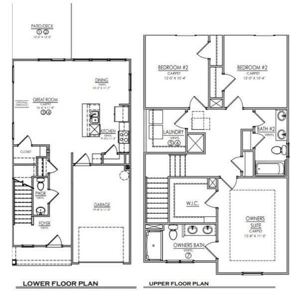 The Laurel II D by Great Southern Homes, a charming home featuring 3 bedrooms and 2.5 baths. The kitchen is a highlight, boasting a stylish island with a built-in sink, backsplash, and an eat-in dining area. The living room is cozy and inviting, complete with a fireplace. The owner's suite is generously sized, offering a huge walk-in closet and a bathroom with double vanities and a tile shower. An additional bathroom also features two sinks, providing convenience for family or guests. The laundry room is conveniently located upstairs. Enjoy the privacy and serenity of backing up to green space, making this home a perfect retreat. Verify details with listing agent. Stock photos used.