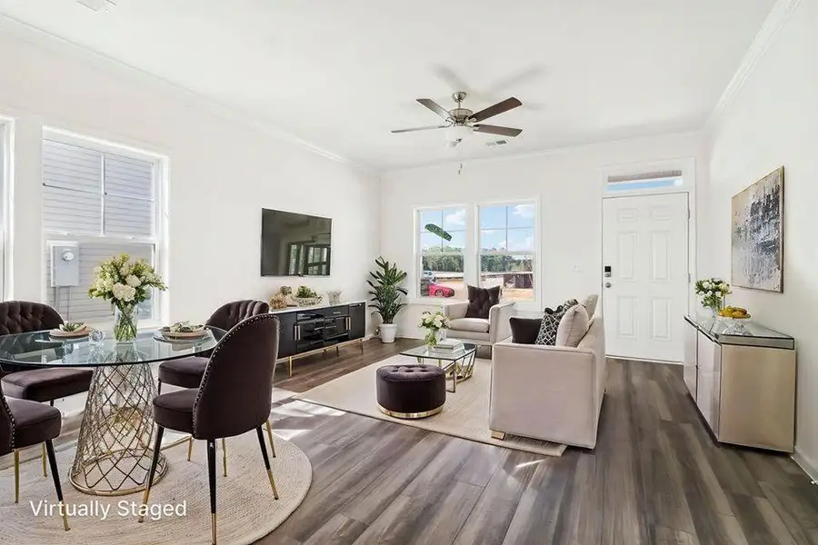The Briarwood II B by Great Southern Homes features an owner's suite on the main level, complete with a spacious private bathroom and walk-in closet. The great room seamlessly opens to both the dining room and the kitchen which includes a large island, perfect for entertaining. The second and third bedrooms are located on the second level, sharing a full bath. Verify details with listing agent. Stock photos used.