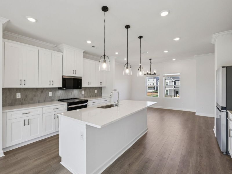 Relax after a long day in the Somerset’s primary suite, complete with a private ensuite and walk-in closet. On the second floor, the sprawling kitchen island anchors the open-concept space. The first-floor bedroom is perfect for overnight guests.