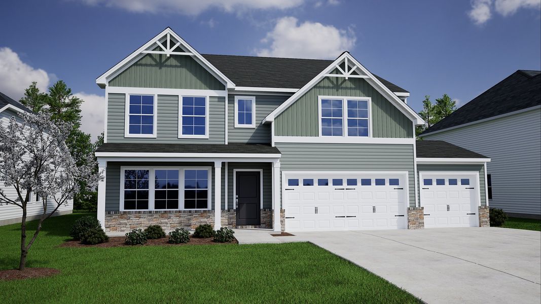 Welcome to Nazareth, Lexington's exclusive three-car garage community that sits on some of the largest homesites in the area! The Turner is a two-story open plan with five bedrooms and three-and-one-half baths. There is a formal office space off of the entry. Towards the center of the great room is a cozy gas fireplace. The spacious kitchen features a large island and a walk-in pantry off of the garage entrance. Storage is readily available with multiple linen closets and under-the stairs storage. Upstairs, the primary bedroom features a large walk-in closet and linen closet as well as a tiled separate tub and shower. Four secondary bedrooms, along with a bonus room and laundry room are also located upstairs. We've added a covered porch to enjoy the cool Carolina evenings. Call for more information!