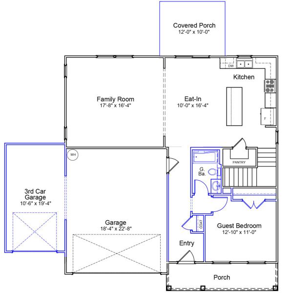 The Russell plan features three bedrooms and two-and-one-half baths, with the ability to expand to five bedrooms and four baths. There is an open flex space off the entry. The kitchen features a large island and pantry, and it’s open to the eat-in area and great room. All bedrooms, plus a large open loft, are located upstairs. The primary bedroom has dual walk-in closets, and the large bathroom features an oversized linen closet and water closet. Both secondary bedrooms have walk-in closets, and the laundry room is conveniently located adjacent to the bedrooms. Options include a downstairs guest suite or office, an upstairs guest suite, a fourth secondary bedroom, and a fourth full bath.