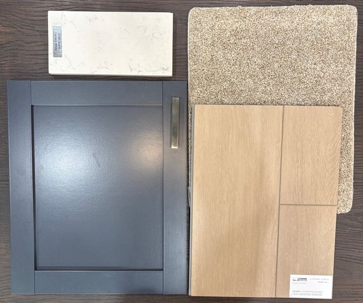 Move-In-Ready…. This Santa Barbara style home was beautifully designed with you in mind. This spacious Carson plan has a lovely living room with Minka Ceiling Fan and LED Disc lights that leads right into the open concept kitchen / dining area. Fulton Harbor blue shaker style cabinets, Satin Nickel cabinet pulls, Carrara White Quartz countertops, center island, Pendant Lights and Brushed Nickel Kitchen faucet make this charming kitchen the place to be. Enjoy cooking on your GE Stainless gas range and whip up a meal so tasty your family will be talking about it for days. Kitchen also includes GE Stainless over-the-range microwave, dishwasher and refrigerator. This 3 Bedroom, 2 ½ bath includes 5” wide Starting Point Serene Greige luxury vinyl plank flooring throughout 1st floor main living areas and Shaw Midway Plaza Wheat Field carpet in second floor bedrooms. Spacious Owner’s bedroom with Tray Ceiling, LED Disc lights, Minka Ceiling Fan and walk- in closet. Stunning Owner’s bath includes Full Walk-In shower, Streamline Carrara White resilient flooring, Fulton Harbor Blue double vanity, Arctic White Quartz top, undermount white rectangular sinks and linen closet. Second floor Laundry Room includes Washer/ Dryer hookup and shelving for all your laundry accessories. And for some final touches, 2” White Blinds, Sherwin Williams City Loft low VOC interior wall paint, Framed bathroom mirrors and a Rear Covered Porch to complete your move-in -ready experience.