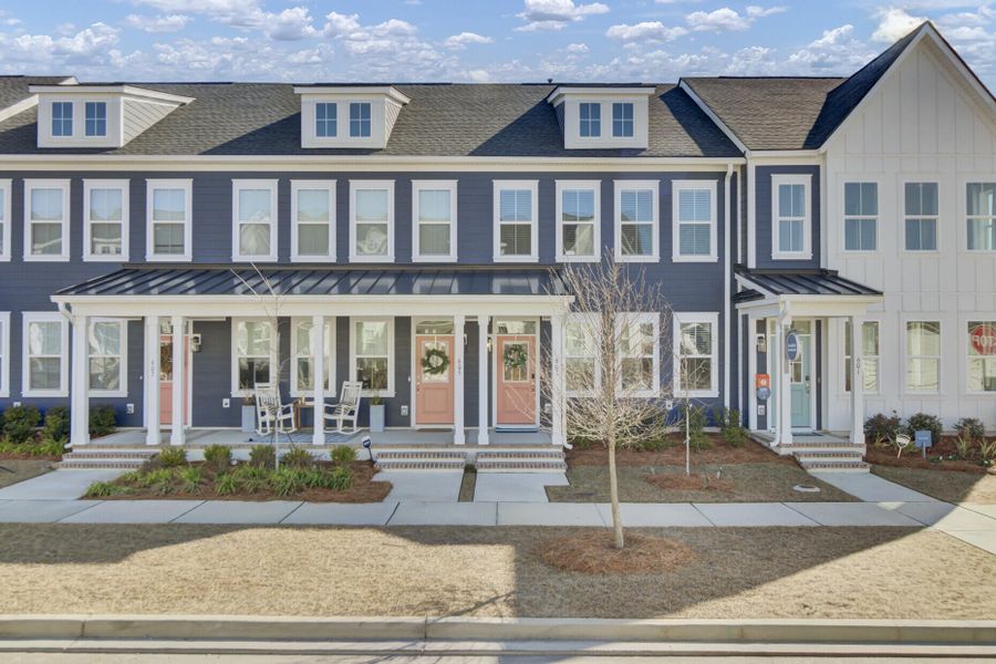 Experience modern living in this meticulously maintained ''Sage'' townhome, perfectly situated in the highly sought-after Midtown neighborhood of Nexton. Built by Brookfield Residential in 2024, this home has been lightly used as a second residence and feels like new.The open-concept main level is designed for entertaining, featuring a seamless flow between the spacious great room and a versatile flex space. The chef-inspired kitchen, positioned at the rear for privacy, showcases crisp white cabinetry, elegant Carrara Miami quartz countertops, and premium stainless steel appliances. A large eat-in island serves as the heart of the home, while a door leads directly to your private concrete patio and detached one-car garage.