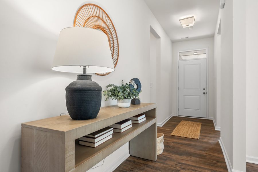 The Harmony floor plan is a 1,656 square foot ranch-style home offering 3 to 4 bedrooms and 2 full baths. Its open floor plan and 9' ceilings create a bright, spacious feel throughout the main living areas. A dedicated dining room adds charm and functionality, perfect for family meals or entertaining guests. The primary suite includes generous closet space and easy access to the main living areas. Enjoy outdoor living year-round on the rear covered patio, with a 2-car garage adding everyday convenience.Images are representative of the Harmony plan.