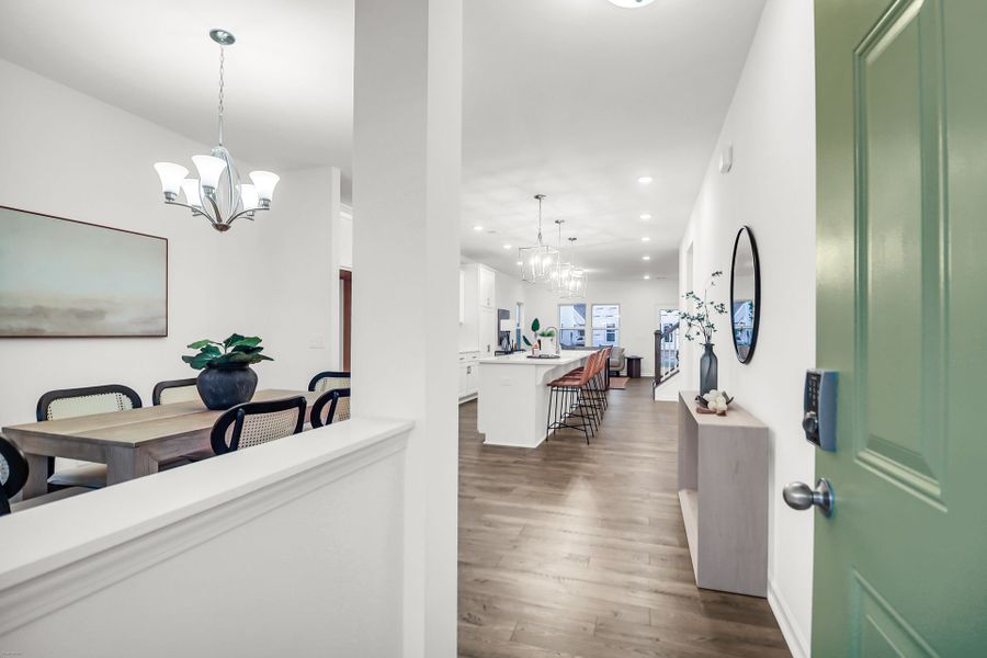 The Tanner P plan offers convenient main-level living with a spacious Primary suite and nearby laundry room. The well-designed kitchen features stainless steel appliances, modern finishes, and a separate but open dining area that seamlessly flows into the kitchen and Great Room, creating an ideal space for entertaining. Upstairs, you'll find two generously sized secondary bedrooms, a full bath, and a large loft area perfect for relaxation or additional living space. The second floor also includes a storage area and utility room, adding to the home's functionality. This thoughtfully designed home combines comfort and modern style in every detail. Lot boasts a gorgeous view of the 2-acre park from front porch!