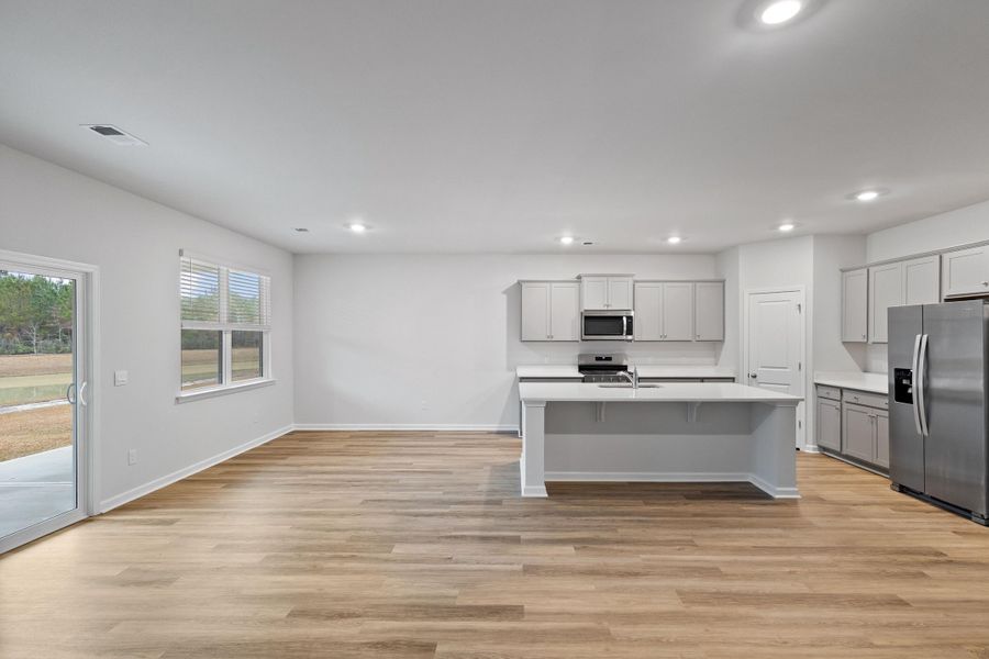 Special Interest Rate with Closing Cost Assistance paid for by Builder. Welcome home to 153 Grouper Lane, a spacious home situated on a private conservation lot. Located in The Cove at Mallard Crossing, this home delivers exceptional value in one of Summerville's most convenient locations. This neighborhood puts you only moments from parks, downtown Summerville, and major commuter routes. With spacious homes and placement in the sought-after DD2 school district, this community checks every box for today's homebuyers.This home features the popular Litchfield floor plan, designed for comfortable and stylish single-story living. The open-concept layout creates a bright, spacious feel, seamlessly connecting the living area, dining space, and kitchen ideal for both everyday living and entertaining. The large kitchen serves as the heart of the home, offering a generous island with ample seating, plenty of counter space, and room to gather while cooking or hosting. From the living room, sliding glass doors open directly to the expansive covered back patio, creating an effortless indoor-outdoor connection perfect for year-round dining, relaxing, or entertaining guests.