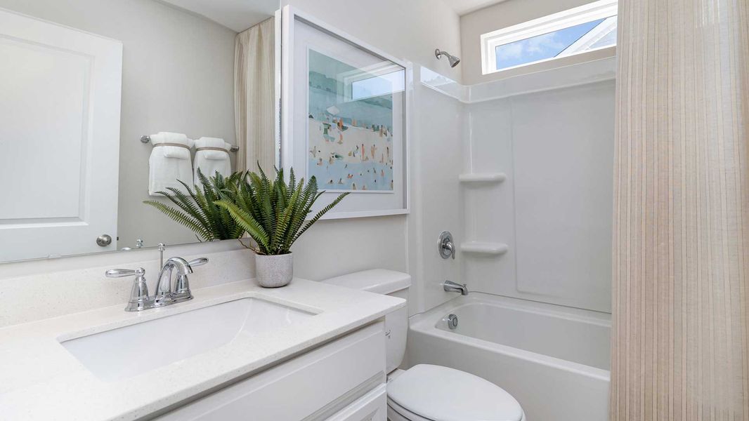 Our Forrester plan is a well appointed two story home with a picturesque front porch, formal dining area, and a huge kitchen island! Sliding glass doors off the kitchen lead to the rear screen porch creating a seamless transition from indoor to outdoor living! A bedroom and full bath on the first floor are also perfect for visiting guests while the grand owner's suite, two additional bedrooms, laundry room, and a large bonus room over the garage are upstairs. This is America's Smart Home!