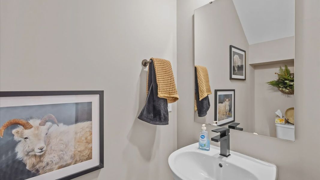 The main level primary suite offers a spacious walk-in closet and a luxurious en suite bathroom complete with two separate vanities, a private water closet, a linen closet, and a tiled walk-in Roman shower. The private two-car garage with utility sink leads into a functional mudroom with an adjacent laundry room for everyday convenience.