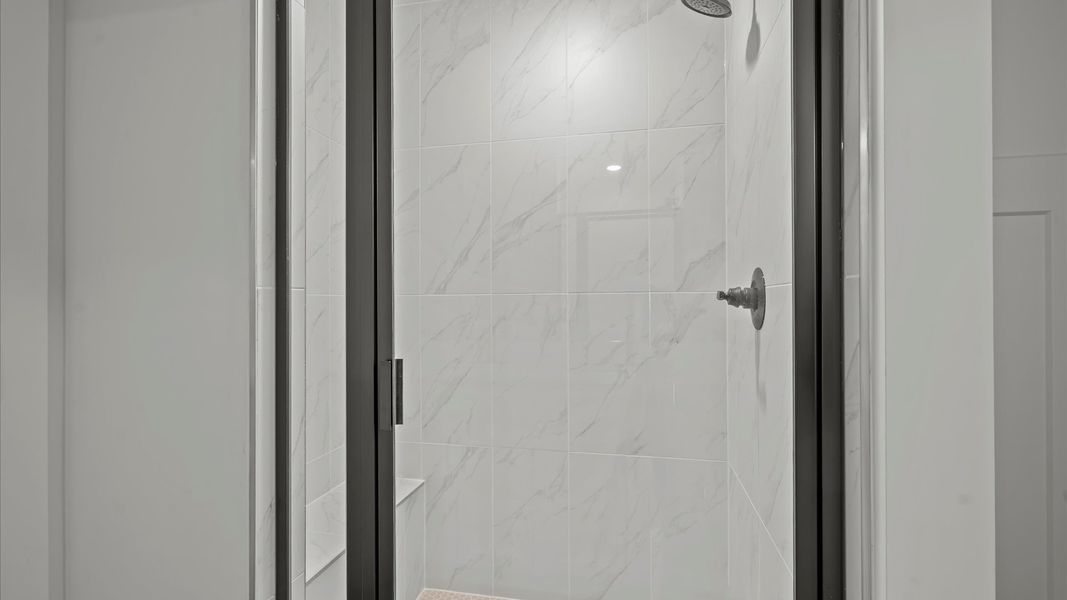 The roomy primary suite boasts a spacious walk-in closet and an en suite primary bathroom with a dual vanity, water closet, and tiled walk-in shower with bench seat