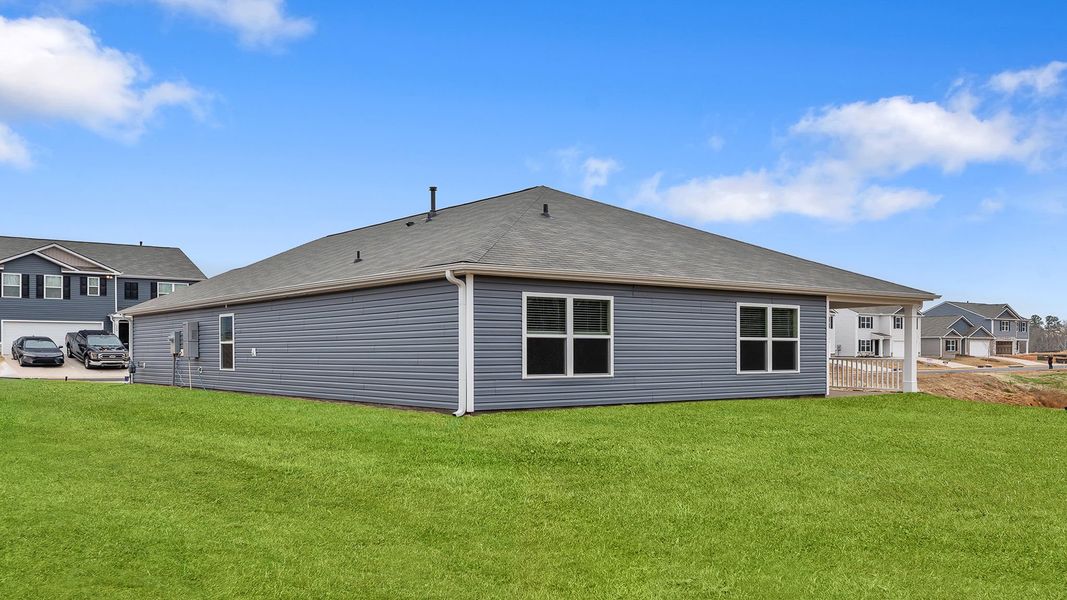 Out back, you’ll find a covered porch, ideal for enjoying outdoor meals or simply relaxing in the fresh air. With its thoughtful design and open layout, this home is perfect for modern living. Pictures are representative.
