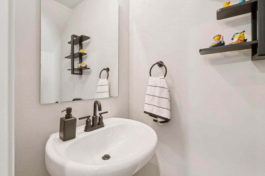 Step inside to soaring 9-foot ceilings, wide plank flooring, and matte black fixtures that elevate every detail. The open-concept main level seamlessly connects the living and dining areas with a sun-drenched patio--perfect for morning coffee or evening gatherings.At the heart of the home, the kitchen is both functional and refined, offering quartz countertops, stainless steel appliances, upgraded ceramic tile backsplash, and a generous center island ready for meal prep or casual dining.Upstairs, the spacious primary suite invites relaxation with a spa-like en suite bath featuring a sleek black-framed tiled shower, dual vanities, and a walk-in closet. Two additional bedrooms overlook the manicured front lawn and share a full bath with a tub/shower combo.A convenient upstairs laundry and downstairs powder room add everyday ease, while the attached garage offers ample storage.