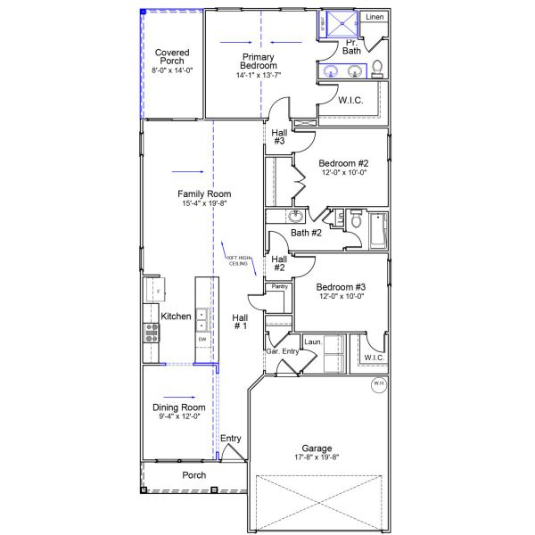 Welcome to the Brunswick, a spacious single-story home designed for both style and convenience! Step inside to find a formal dining room off the entry that flows seamlessly into the open-concept kitchen and family room with soaring vaulted ceilings. The great room comes with a vaulted ceiling that pulls you in all the way towards a covered rear porch, perfect for indoor-outdoor living. This three-bedroom home includes a luxurious primary suite with vaulted ceilings, an upgraded bath featuring a five-foot fiberglass shower, dual-sink vanity, and a generous walk-in closet. Two secondary bedrooms share a well-appointed hall bath with and a private door separating the vanity area from the shower and toilet—ideal for busy mornings. A roomy laundry space sits just off the two-car garage for everyday ease. With thoughtful details throughout, the Brunswick combines comfort, function, and style in one smart design.
