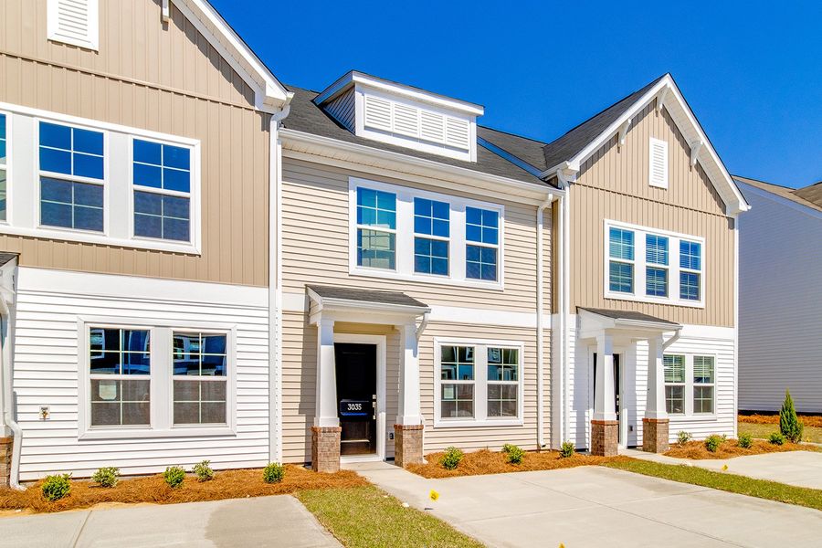 The Laurens A end unit offers a bright and welcoming layout with an open main floor that connects the great room, dining area, and kitchen for easy everyday living. The kitchen features clean white cabinets, Luna Pearl granite countertops, stainless steel appliances, pendant lighting, and Driftwood luxury vinyl plank flooring that adds a warm, natural feel throughout the first level. Upstairs, the primary suite provides a comfortable retreat with a spacious walk‑in closet and an ensuite bathroom featuring a tub/shower combo, while the additional bedrooms are finished with durable concrete‑tone carpet for added comfort. A fully fenced backyard with a generous patio and exterior storage closet enhances outdoor living and included irrigation and exterior maintenance help keep life simple. Planned community amenities—including a pool, cabana, playground, fire pit, and sidewalks—create a welcoming environment designed for relaxation and connection.